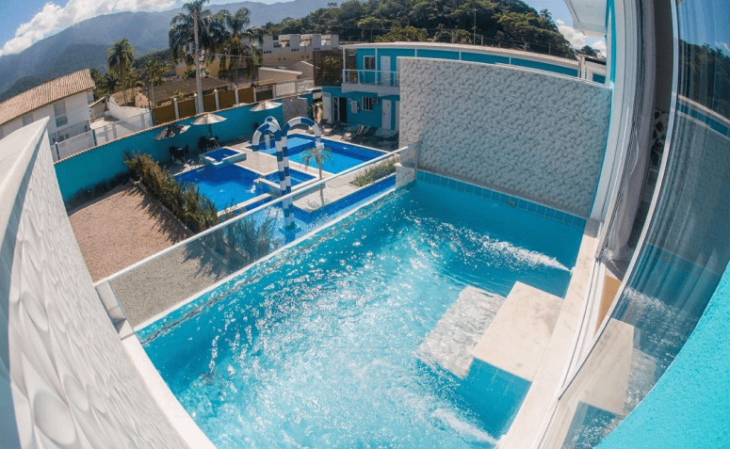 Este lugar possui o melhor custo benefício no litoral de São Paulo. A Pousada Encanto Sol e Mar conta com uma suíte com piscina privativa de vidro na sacada, ideal para relaxar e se refrescar. Os quartos são simples, mas oferecem conforto e praticidade para um fim de dia de praia. A propriedade está na Praia de Massaguaçu em Caraguatatuba.
